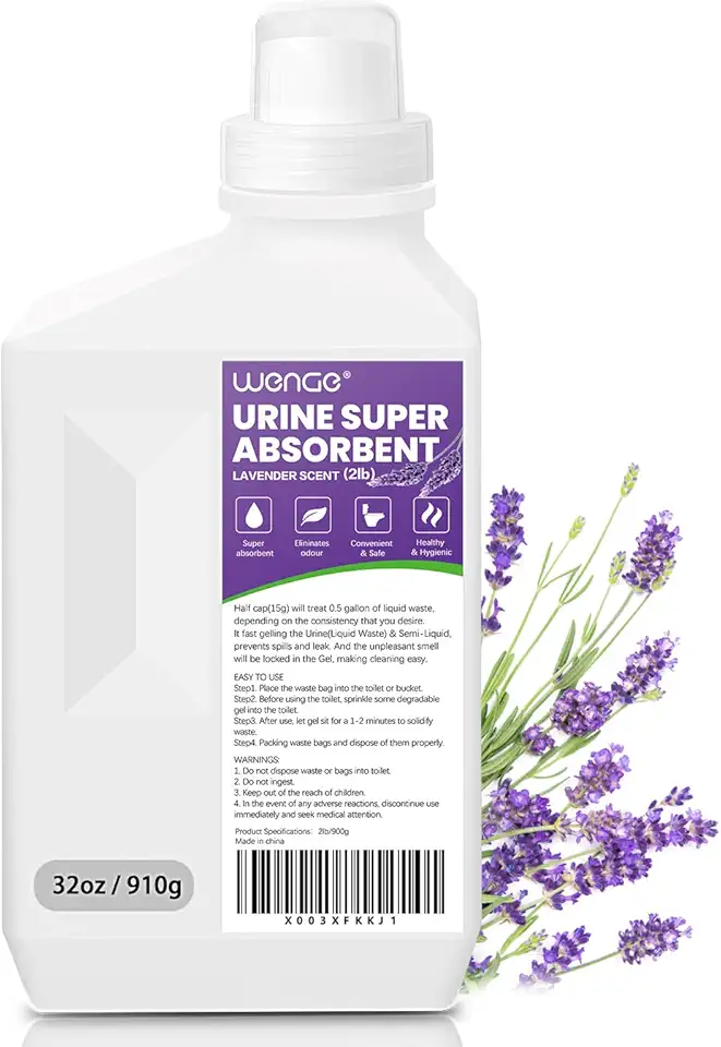 The Wenge Urine Super Absorbent powder is fantastic for our portable toilet. A scoop turns liquid into gel—no splashing, no odors (lavender scent is pleasant). It’s eco-friendly and works in camping or emergency situations. One bag lasts 180 uses—great value. The purple color makes it easy to see when to add more. No clumping or residue. We use it in our RV toilet—makes emptying so much cleaner. This powder has eliminated the worst part of portable toilets—highly recommend for anyone using dry-flush or porta-potties!